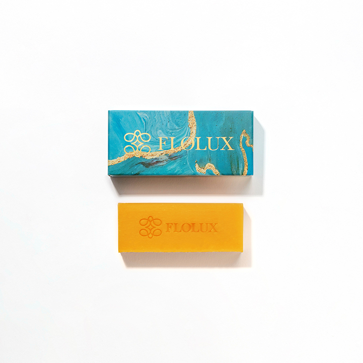 コールドプロセス製法の化粧石けん。ゆずやオレンジの柑橘系の香りが弾け、ラベンダーがふんわり立ち上る。まるで太陽の心地よい陽光を浴びているような、フレッシュでポジティブな印象の香り。